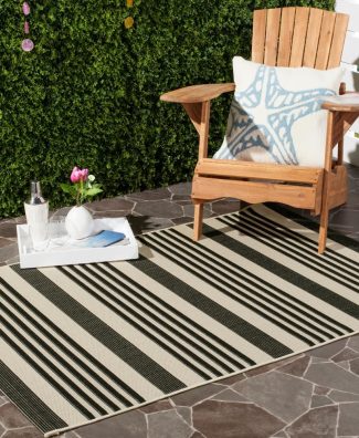 Introducing the SAFAVIEH Courtyard Collection Accent Rug, a versatile and stylish addition to your indoor or outdoor space. This beautifully crafted rug measures 4′ x 5’7″ and features a timeless black and bone stripe design that effortlessly complements any decor. Constructed with high-quality materials, this rug is designed to be non-shedding and easy to care…
